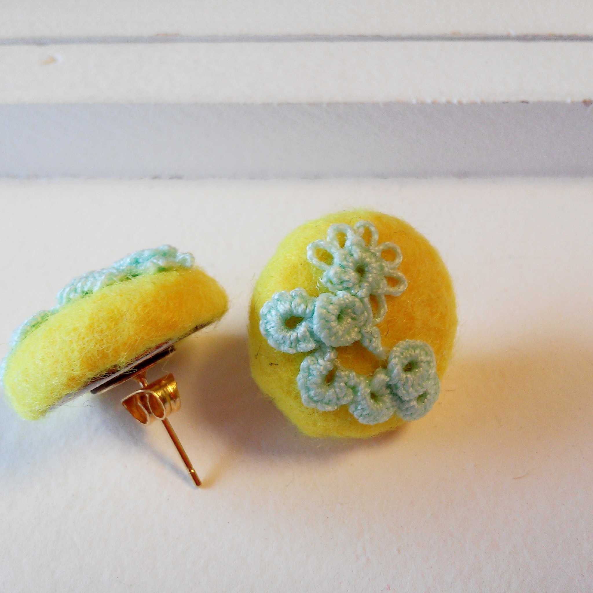 黄色いフェルトくるみボタンシリーズです。